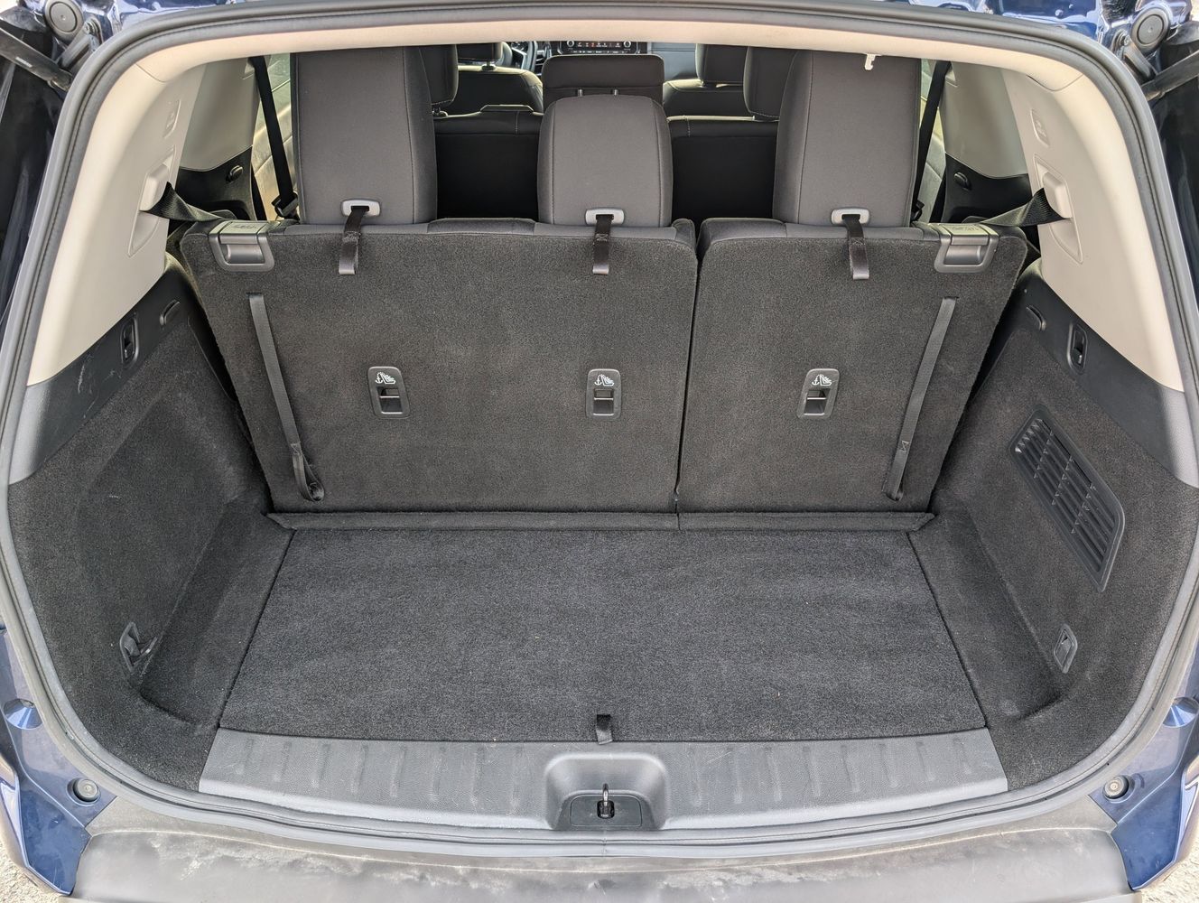 Third-row seatback upholstery: Carpet third-row seatback upholstery